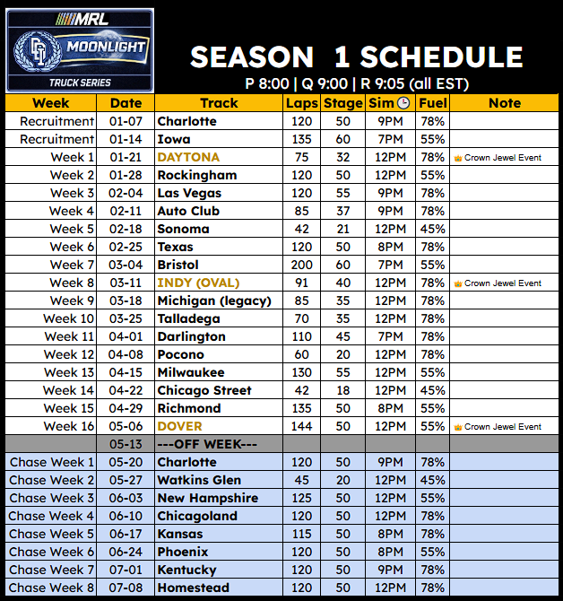 Practice: 8pm ESTRace: 9:05pm ESTJoin Series on Iracing